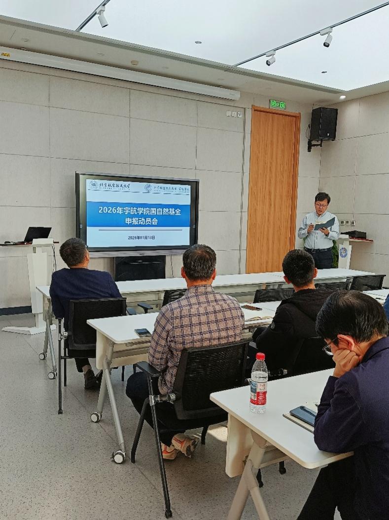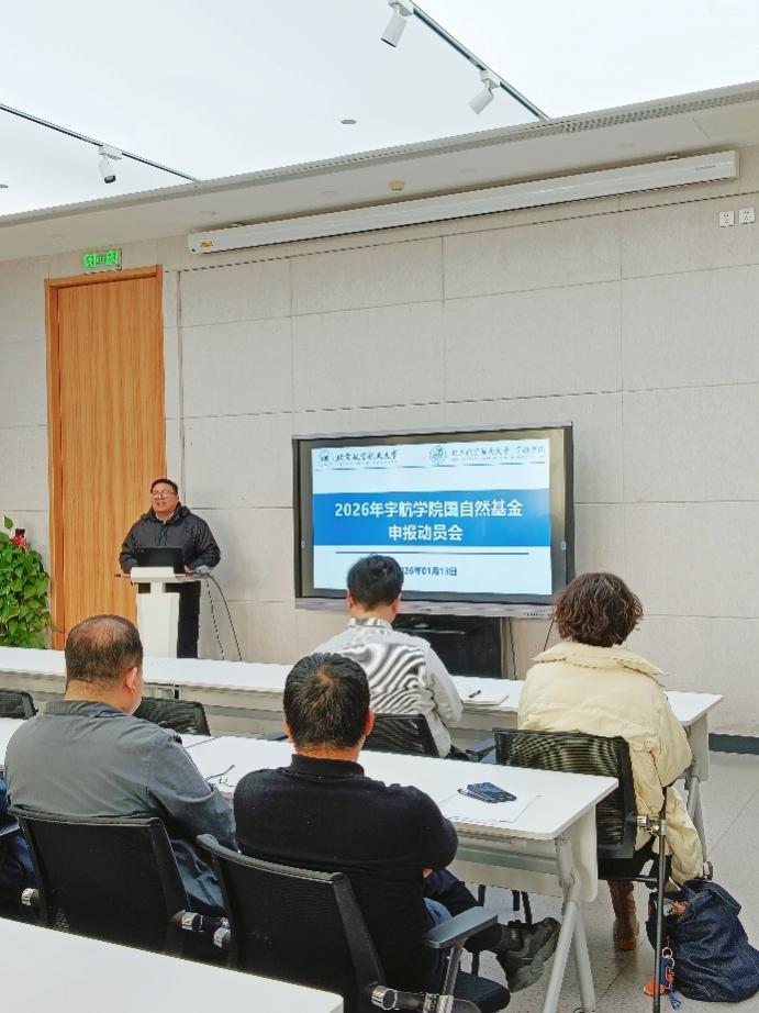 2026年是“十五五”规划开局之年,为厚植基础研究沃土、筑牢原始创新根基,稳步推进国家自然科学基金申报工作,以高水平科研赋能学校高质量发展。2026年1月13日上午,宇航学院2026年国家自然科学基金申报动员会在沙河校区D409会议室召开。