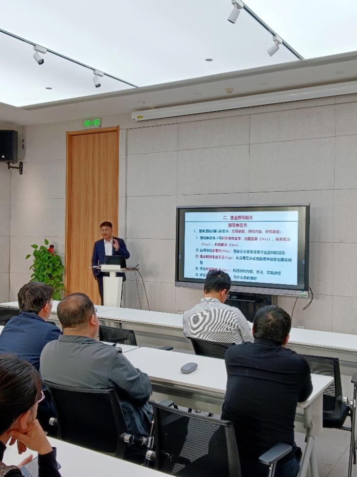 张振华副院长向与会教师传达学校国家自然科学基金申报动员会会议精神, 介绍了2025年全校国家自然科学基金获批情况、2026年全校国家自然科学基金政策变化、工作目标、组织措施。