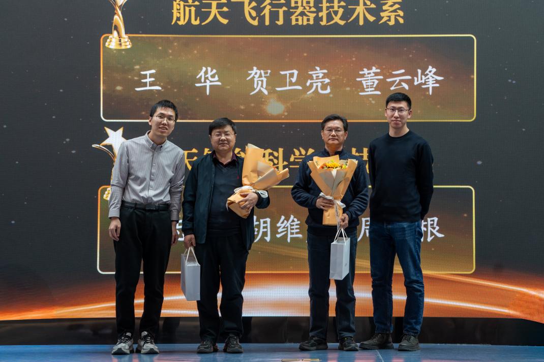新宇航人上台发言环节,新进教师代表武迪、陈志远、白雪、杨元凯依次发言。他们结合自身求学与工作经历畅谈投身宇航学院的激动心情,并表示将以前辈教师为榜样,深耕专业领域、锤炼教学本领,用实际行动为学院的高质量发展贡献力量。